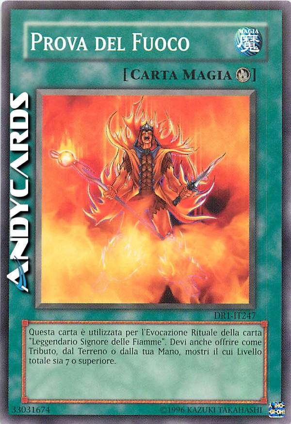 Questa carta è utilizzata per l'Evocazione Rituale della carta "Leggendario Signore delle Fiamme". Devi anche offrire come Tributo, dal Terreno o dalla tua Mano, mostri il cui numero livello totale sia 7 o superiore.