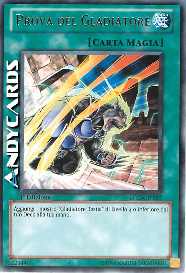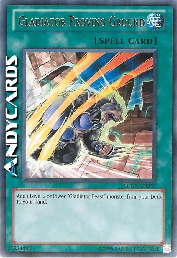 Aggiungi 1 mostro "Gladiatore Bestia" di Livello 4 o inferiore dal tuo Deck alla tua mano.