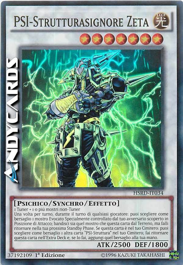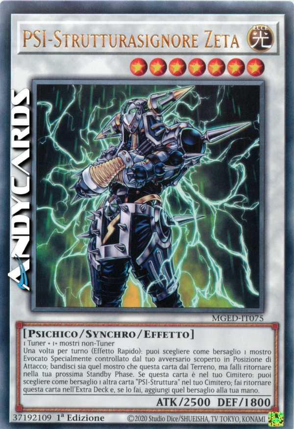 Una volta per turno, durante il turno di qualsiasi giocatore: puoi scegliere come bersaglio 1 mostro Evocato Specialmente controllato dal tuo avversario scoperto in Posizione di Attacco; bandisci sia quel mostro che questa carta dal Terreno, ma falli ritornare nella tua prossima Standby Phase. Se questa carta è nel tuo Cimitero: puoi scegliere come bersaglio 1 altra carta "PSI-Struttura" nel tuo Cimitero; fai ritornare questa carta nell'Extra Deck e, se lo fai, aggiungi quel bersaglio alla tua mano.