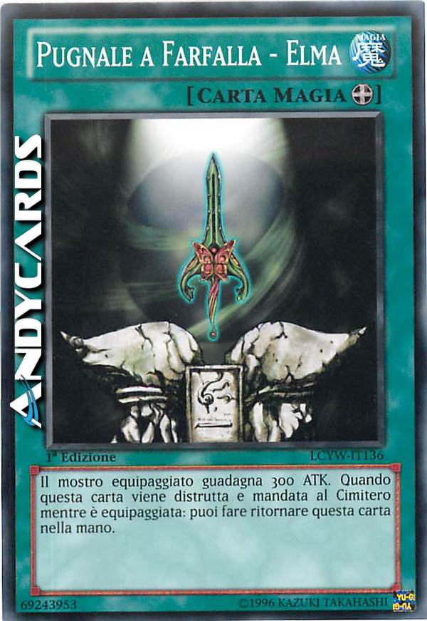 Il mostro equipaggiato guadagna 300 ATK. Quando questa carta viene distrutta e mandata al Cimitero mentre è equipaggiata: puoi fare ritornare questa carta nella mano.