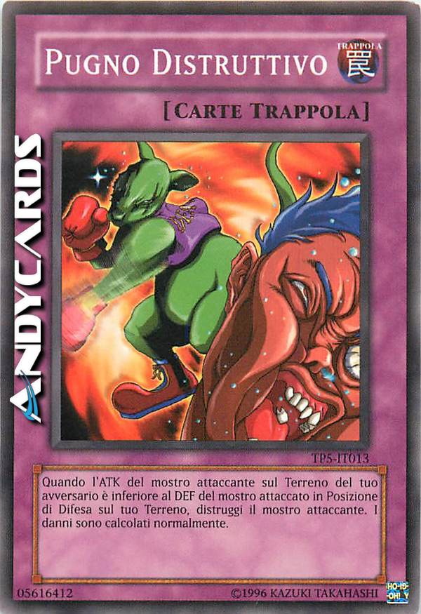 Quando l'ATK del mostro attaccante sul Terreno del tuo avversario è inferiore al DEF del mostro attaccato in Posizione di Difesa sul tuo Terreno, distruggi il mostro attaccante. I danni sono calcolati normalmente.