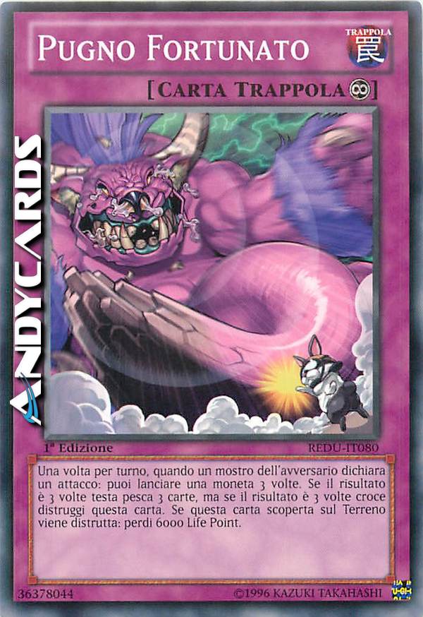 Una volta per turno, quando un mostro dell'avversario dichiara un attacco: puoi lanciare una moneta 3 volte. Se il risultato è 3 volte testa pesca 3 carte, ma se il risultato è 3 volte croce distruggi questa carta. Se questa carta scoperta sul Terreno viene distrutta: perdi 6000 Life Point.