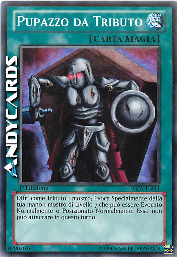 Offri un mostro sul tuo Terreno come Tributo per attivare questa carta. Evoca tramite Evocazione Speciale 1 mostro di Livello 7 dalla tua mano. Quel mostro non può attaccare questo turno.