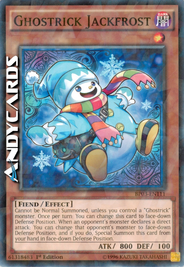 Cannot be Normal Summoned, unless you control a "Ghostrick" monster. Once per turn: You can change this card to face-down Defense Position. When an opponent's monster declares a direct attack: You can change that opponent's monster to face-down Defense Position, and if you do, Special Summon this card from your hand in face-down Defense Position.