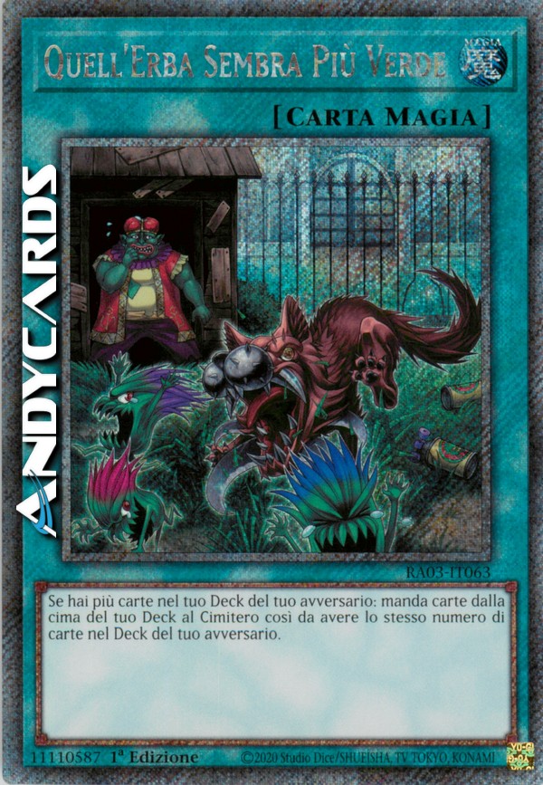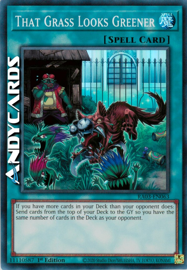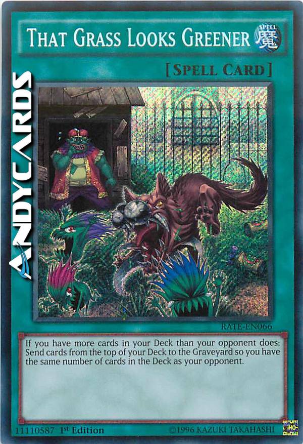 Se hai più carte nel tuo Deck del tuo avversario: manda carte dalla cima del tuo Deck al Cimitero così da avere lo stesso numero di carte nel Deck del tuo avversario.