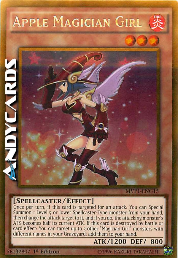 Once per turn, if this card is targeted for an attack: You can Special Summon 1 Level 5 or lower Spellcaster-Type monster from your hand, then change the attack target to it, and if you do, the attacking monster's ATK becomes half its current ATK. If this card is destroyed by battle or card effect: You can target up to 3 other "Magician Girl" monsters with different names in your Graveyard; add them to your hand.