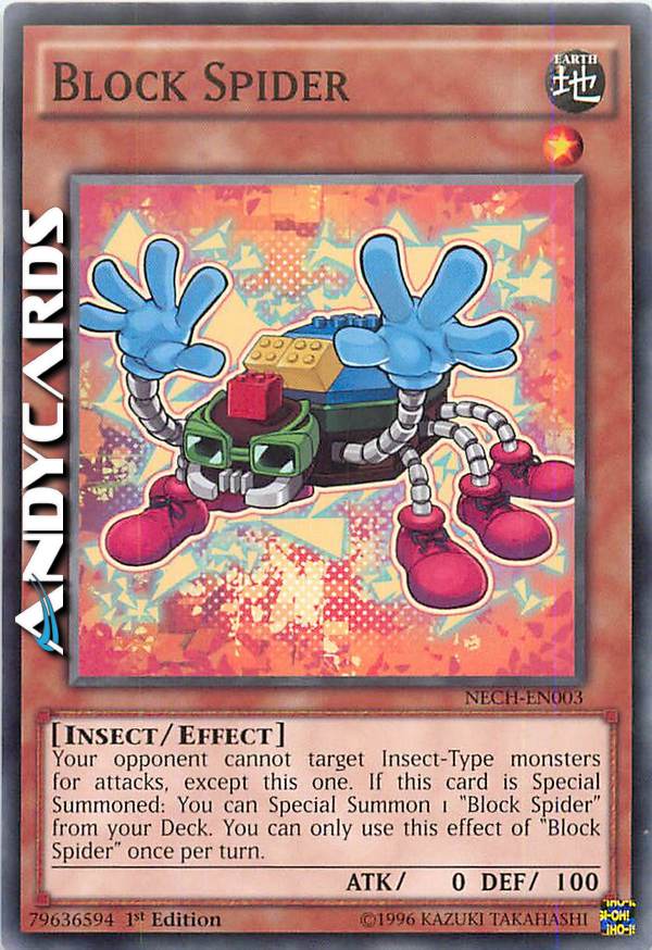 Your opponent cannot target Insect-Type monsters for attacks, except this one. If this card is Special Summoned: You can Special Summon 1 "Block Spider" from your Deck. You can only use this effect of "Block Spider" once per turn.