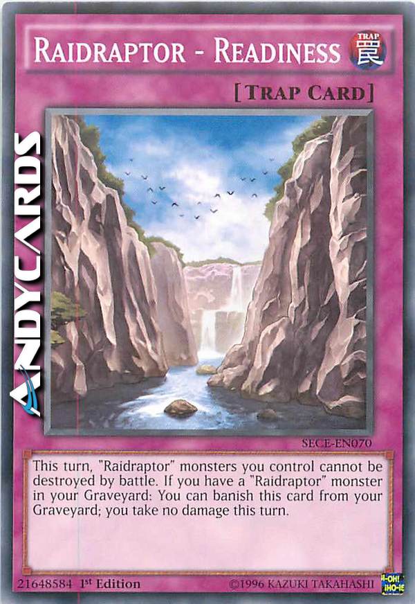 In questo turno i mostri "Raidraptor" che controlli non possono essere distrutti in battaglia. Se hai un mostro "Raidraptor" nel tuo Cimitero: puoi bandire questa carta dal tuo Cimitero; non subisci danno in questo turno.