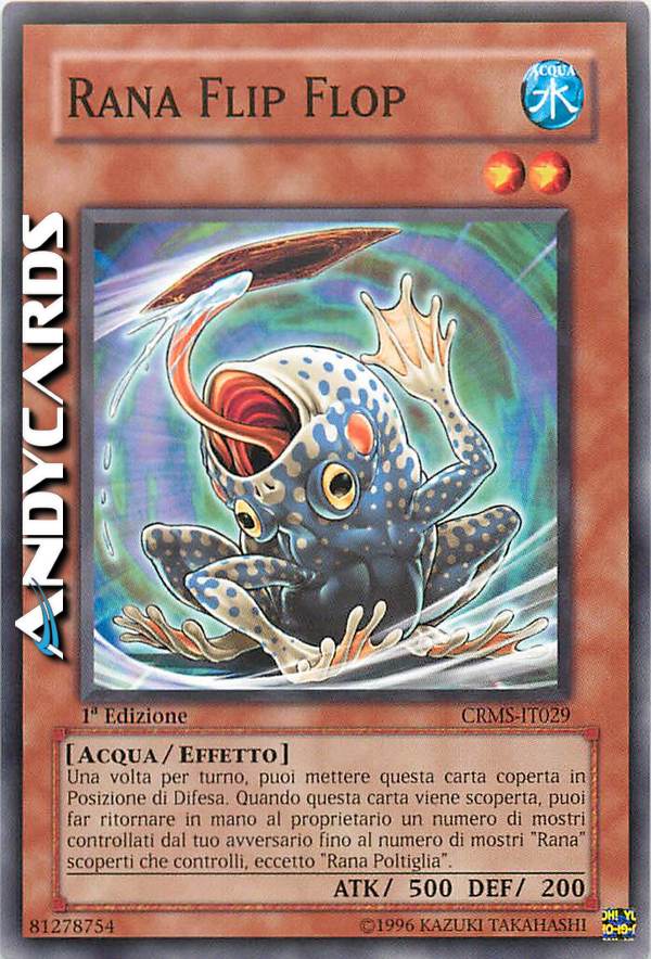 Una volta per turno,puoi mettere questa carta coperta in posizione di difesa.Quando questa carta viene scoperta,puoi far rtornare in mano al proprietario un numero di mostri controllati dal tuo avversario fino al numero di mostri"rana"scoperti che controlli,eccetto"rana poltiglia".