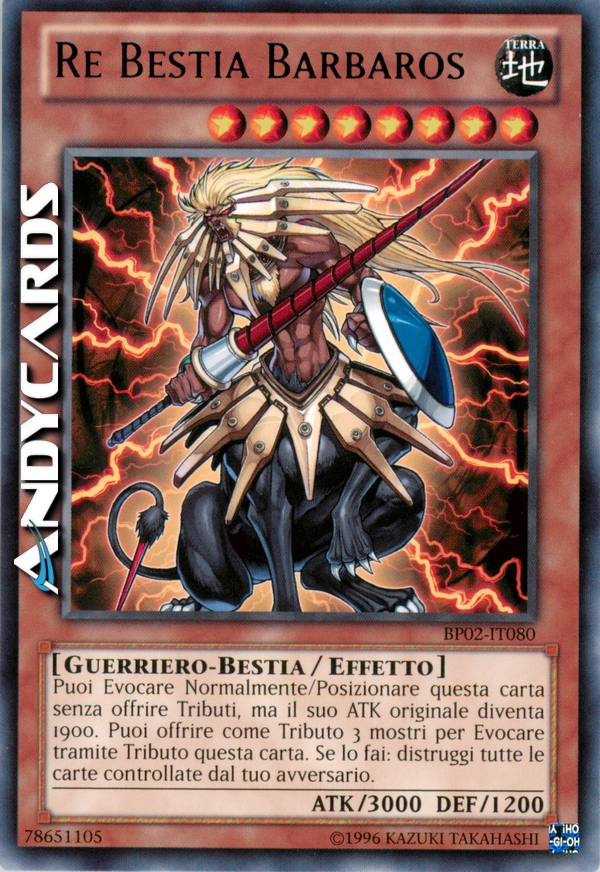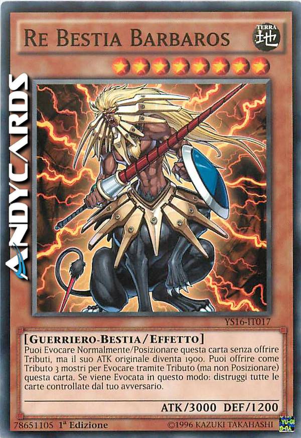 Puoi Evocare Normalmente/Posizionare questa carta senza offrire Tributi, ma il suo ATK originale diventa 1900. Puoi offrire come Tributo 3 mostri per Evocare tramite Tributo (ma non Posizionare) questa carta. Se viene Evocata in questo modo: distruggi tutte le carte controllate dal tuo avversario.