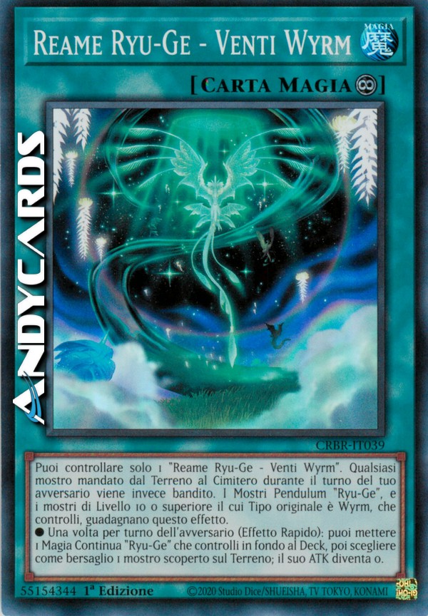 Puoi controllare solo 1 "Reame Ryu-Ge - Venti Wyrm". Qualsiasi mostro mandato dal Terreno al Cimitero durante il turno del tuo avversario viene invece bandito. I Mostri Pendulum "Ryu-Ge", e i mostri di Livello 10 o superiore il cui Tipo originale è Wyrm, che controlli, guadagnano questo effetto.