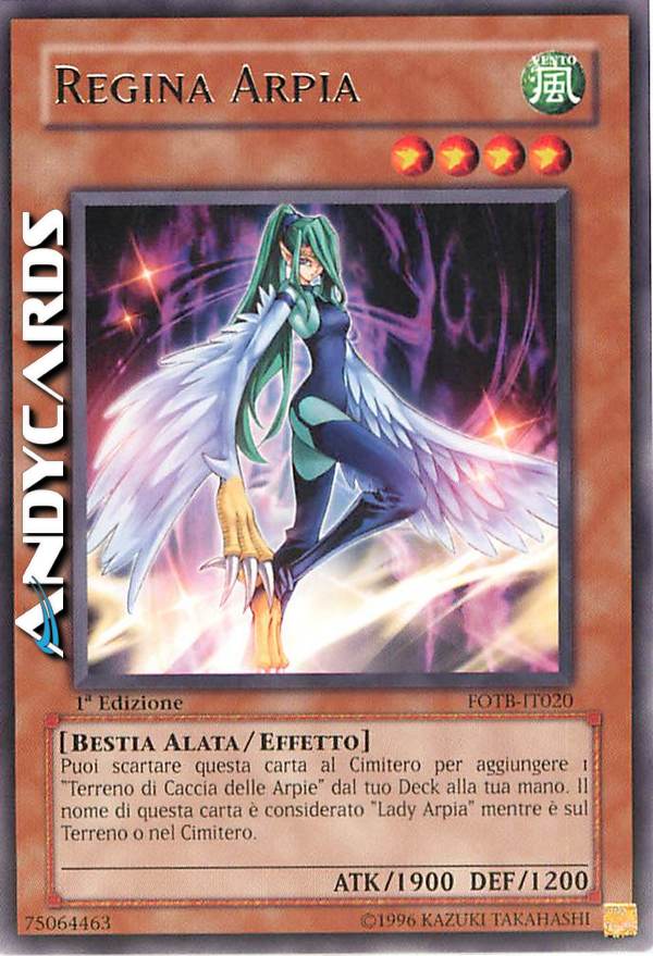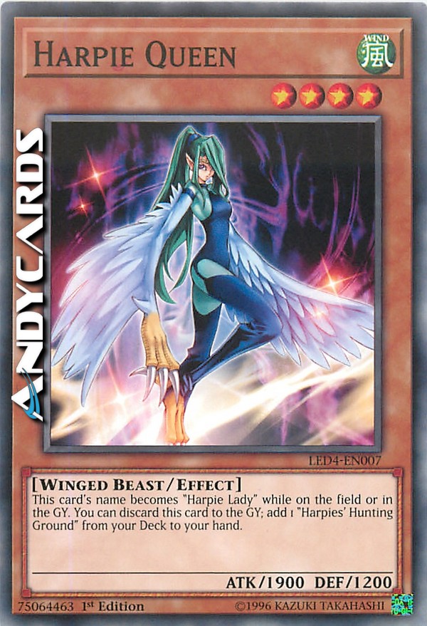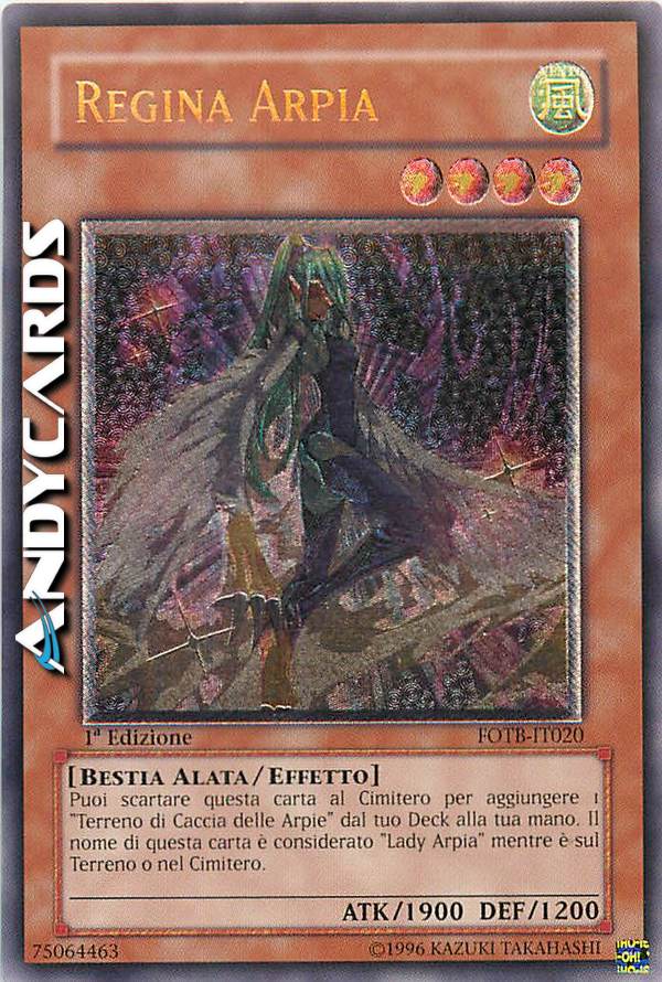 Il nome di questa carta diventa "Lady Arpia" mentre è sul Terreno o nel Cimitero. Puoi scartare questa carta al Cimitero; aggiungi 1 "Terreno di Caccia delle Arpie" dal tuo Deck alla tua mano.