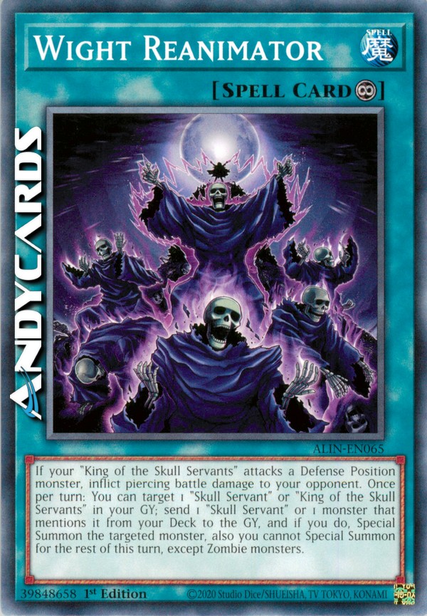 If your "King of the Skull Servants" attacks a Defense Position monster, inflict piercing battle damage to your opponent. Once per turn: You can target 1 "Skull Servant" or "King of the Skull Servants" in your GY; send 1 "Skull Servant" or 1 monster that mentions it from your Deck to the GY, and if you do, Special Summon the targeted monster, also you cannot Special Summon for the rest of this turn, except Zombie monsters.