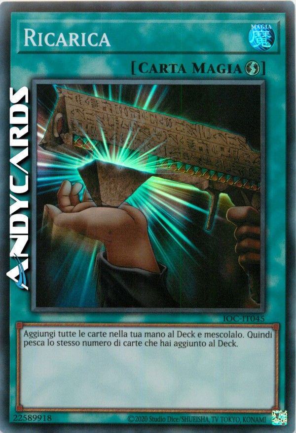 Aggiungi la tua Mano al tuo Deck e mescolalo. Quindi pesca lo stesso numero di carte che hai aggiunto al tuo Deck.
