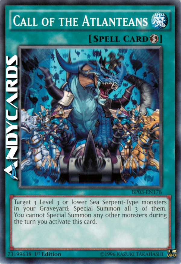 Target 3 Level 3 or lower Sea Serpent-Type monsters in your Graveyard; Special Summon all 3 of them. You cannot Special Summon other monster(s) during the turn you activate this card.