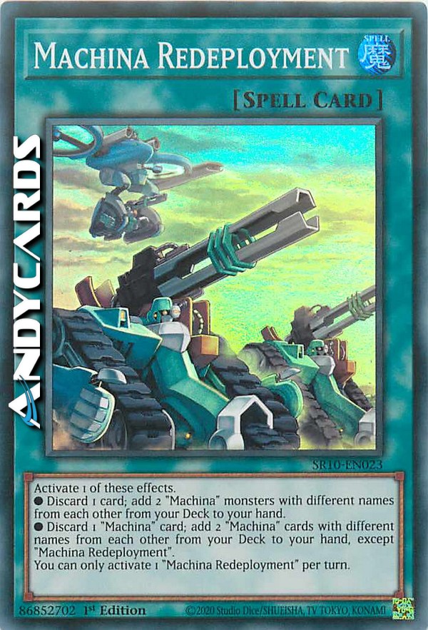 ?Discard 1 "Machina" card; add 2 "Machina" cards with different names from each other from your Deck to your hand, except "Machina Redeployment".