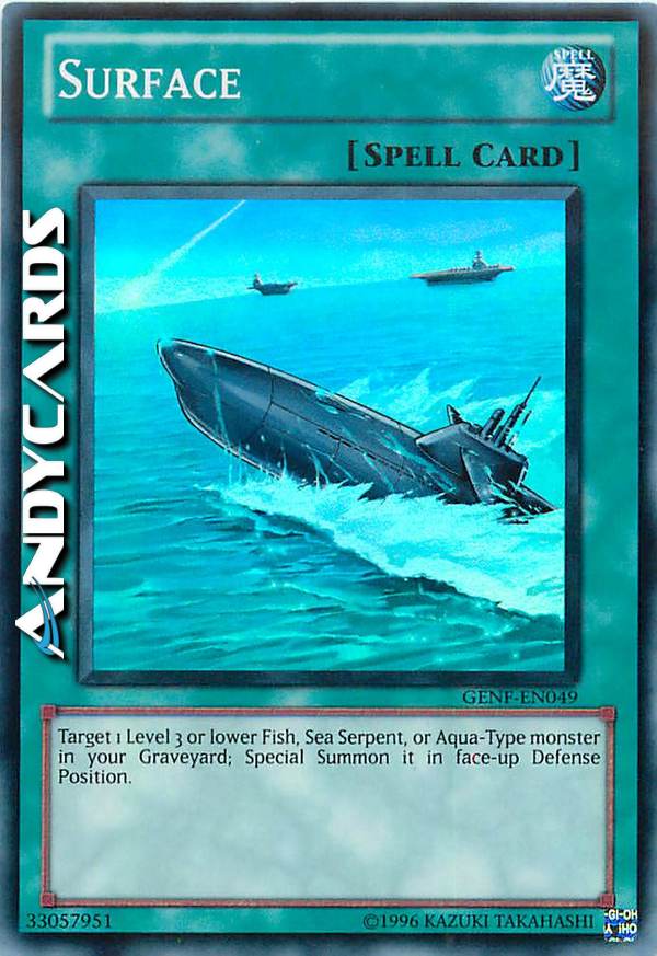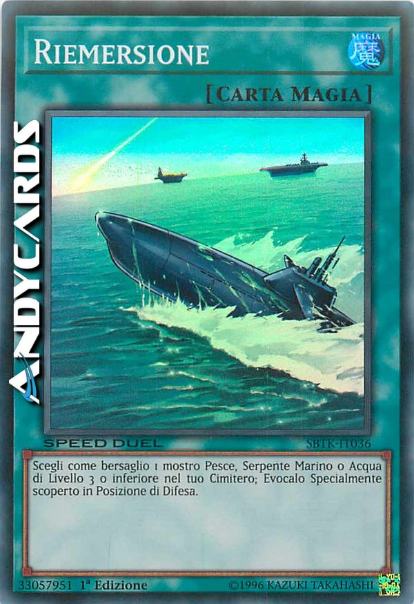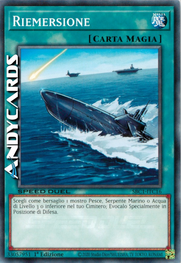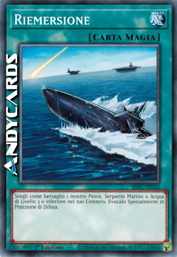 Scegli come bersaglio 1 mostro di Tipo Pesce, Serpente Marino o Acqua di Livello 3 o inferiore nel tuo Cimitero; Evocalo Specialmente scoperto in Posizione di Difesa.