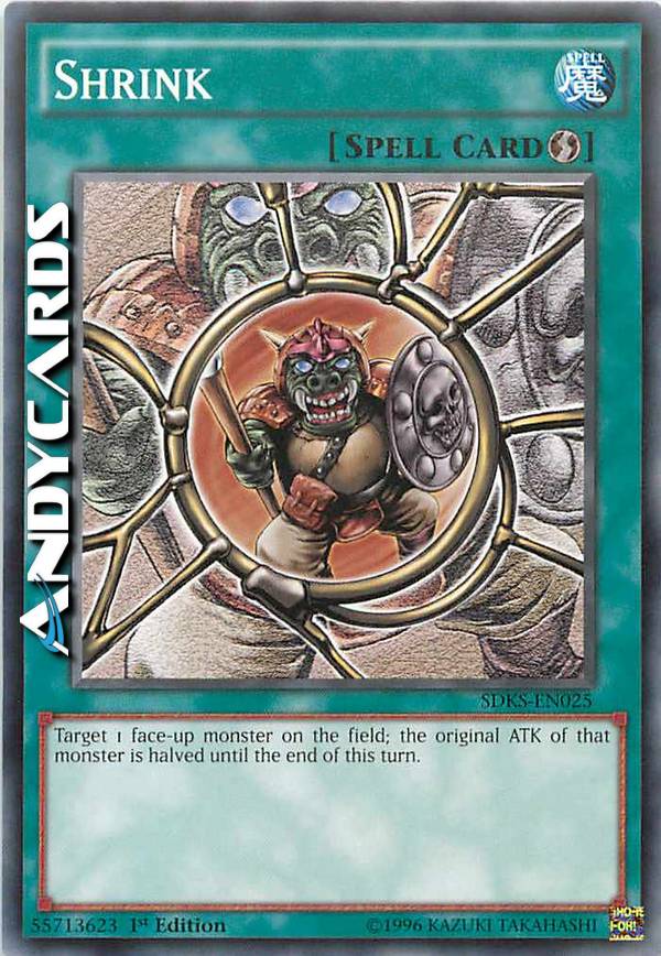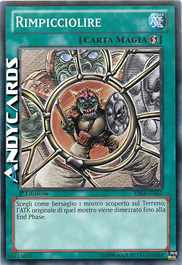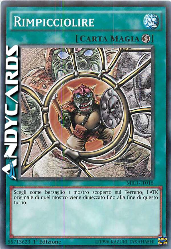 Seleziona 1 mostro scoperto sul Terreno. L'ATK originale di quel mostro è dimezzato fino alla fine di questo turno.