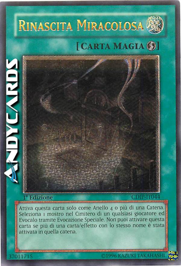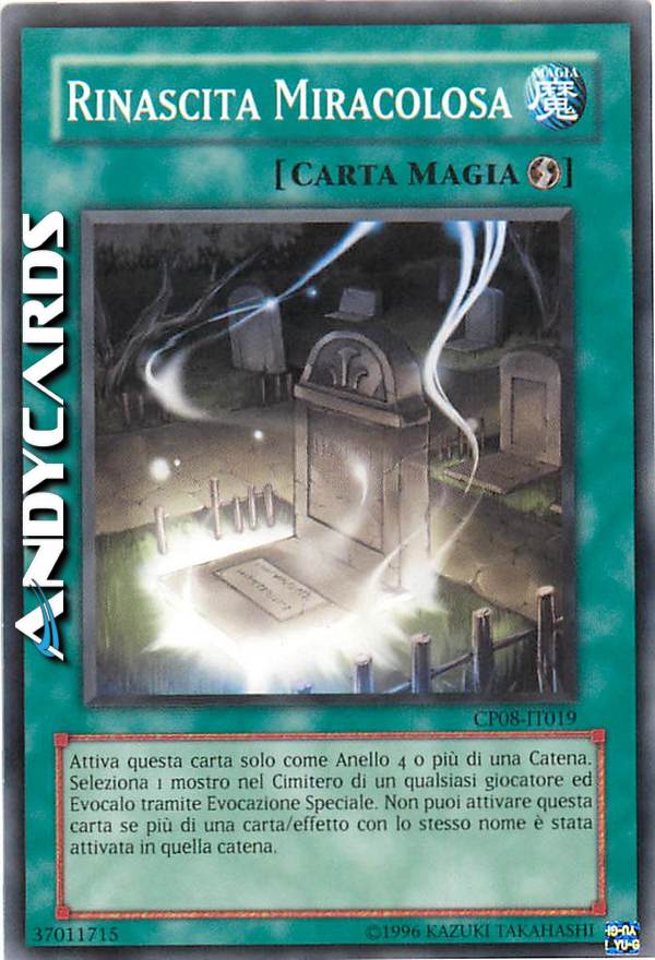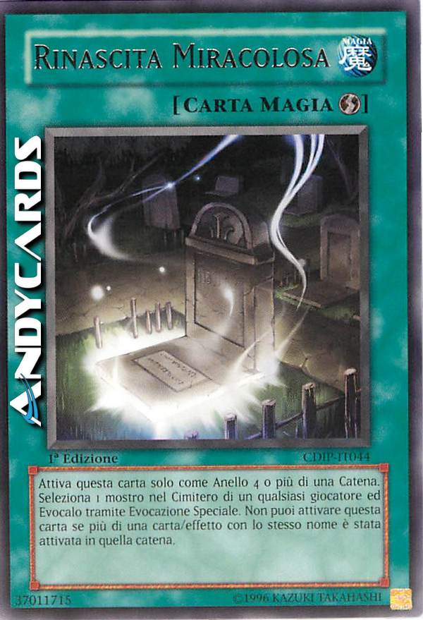 Attiva questa carta solo come Anello 4 o più di una Catena. Seleziona 1 mostro nel Cimitero di un qualsiasi giocatore ed Evocalo tramite Evocazione Speciale. Non puoi attivare questa carta se più di una carta/effetto con lo stesso nome è stata attivata in quella catena.