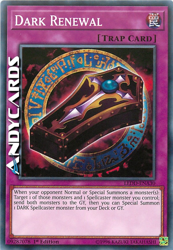 Quando il tuo avversario Evoca Normalmente o Specialmente uno o più mostri: scegli come bersaglio 1 di quei mostri e 1 mostro Incantatore che controlli; manda entrambi i mostri al Cimitero, poi puoi Evocare Specialmente 1 mostro OSCURITÀ Incantatore dal tuo Deck o Cimitero.