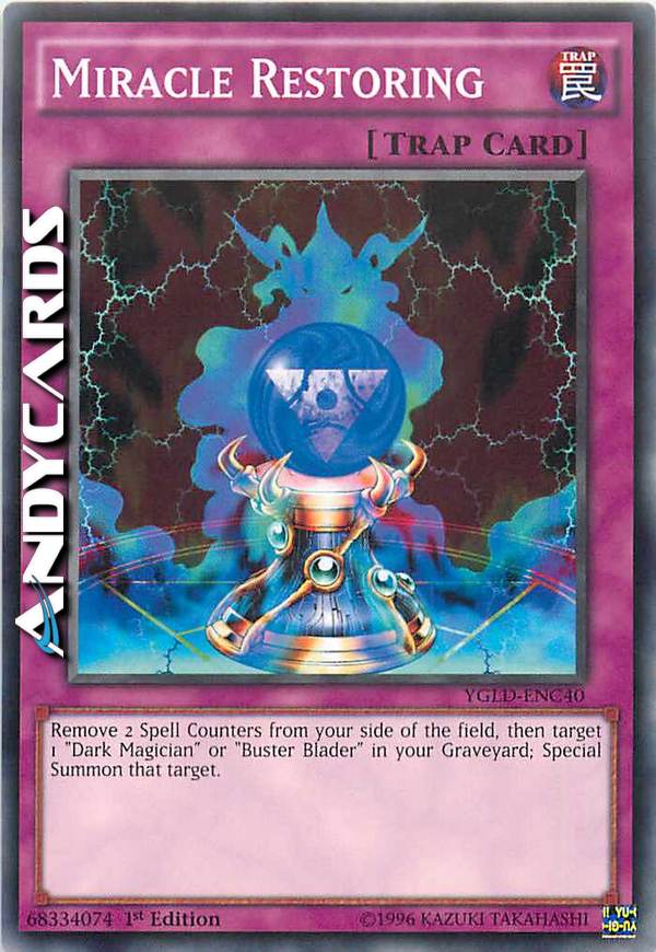 Remove 2 Spell Counters from your field, then target 1 "Dark Magician" or "Buster Blader" in your GY; Special Summon that target.