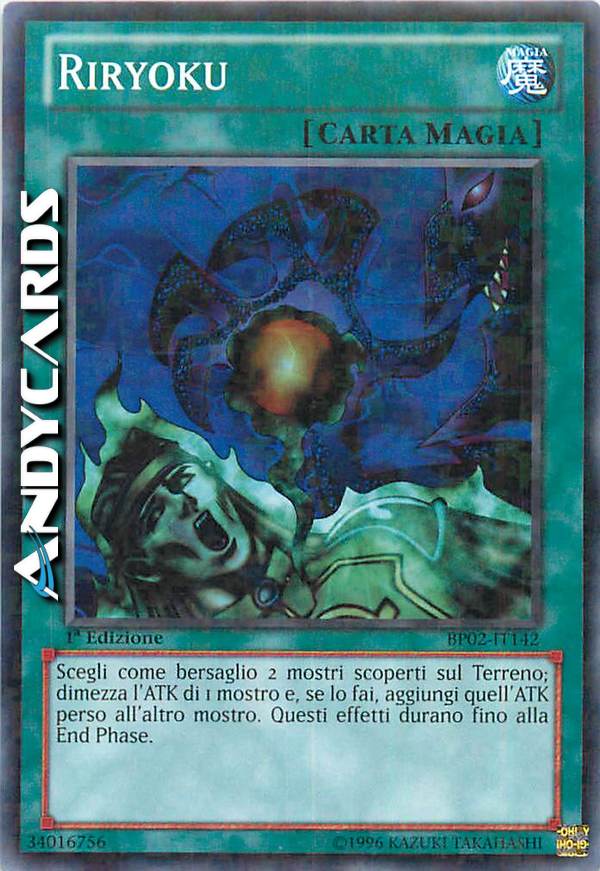 Scegli come bersaglio 2 mostri scoperti sul Terreno; dimezza l'ATK di 1 mostro e, se lo fai, aggiungi quell'ATK perso all'altro mostro. Questi effetti durano fino alla End Phase.