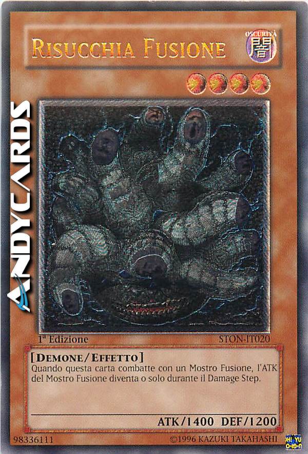 Quando questa carta combatte con un Mostro Fusione, l'ATK del Mostro Fusione diventa 0 solo durante il Damage Step.