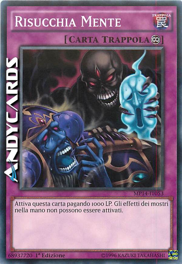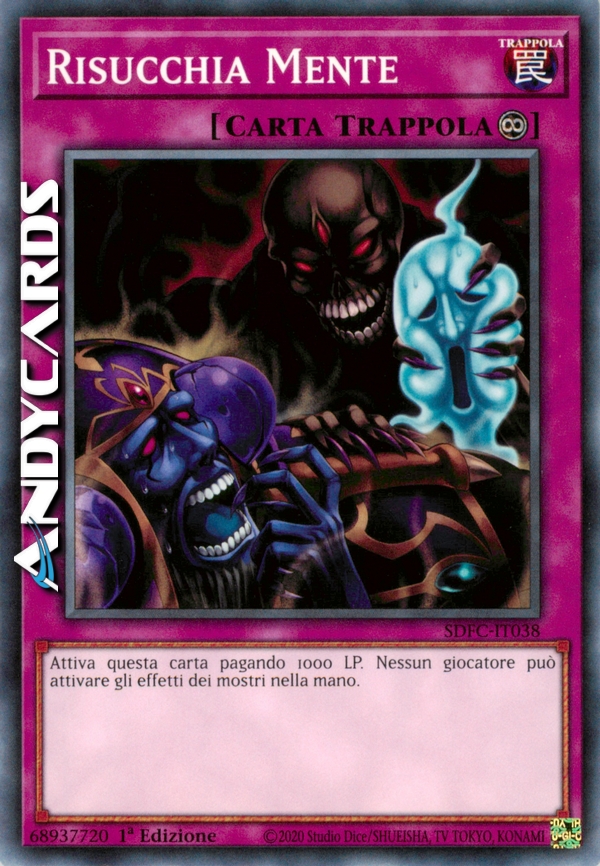 Attiva questa carta pagando 1000 Life Point. Gli effetti dei mostri nella mano non possono essere attivati.