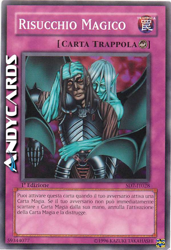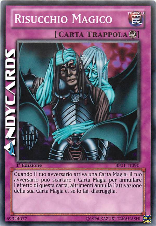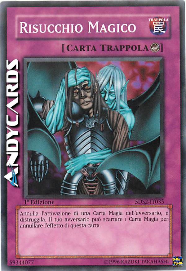 puoi attivare questa carta quando il tuo avversario attiva una carta Magia. Se il tuo avversario non può immediatamente scartare 1 carta Magia dalla sua mano, annulla l'attivazione della carta Magia e la distrugge. NUOVO TESTO: puoi attivare questa carta quando il tuo avversario attiva una carta Magia. Il tuo avversario può scartare 1 carta Magia dalla sua mano per negare l'effetto di questa carta, se non lo fa annulla l'attivazione della carta Magia e distruggila.
