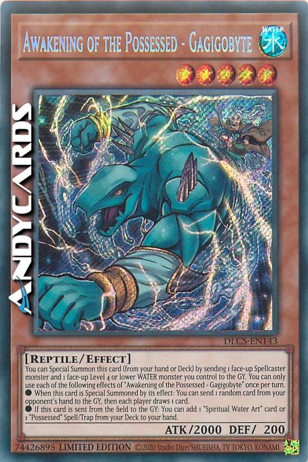 You can Special Summon this card (from your hand or Deck) by sending 1 face-up Spellcaster monster and 1 face-up Level 4 or lower WATER monster you control to the GY. You can only use each of the following effects of "Awakening of the Possessed - Gagigobyte" once per turn.