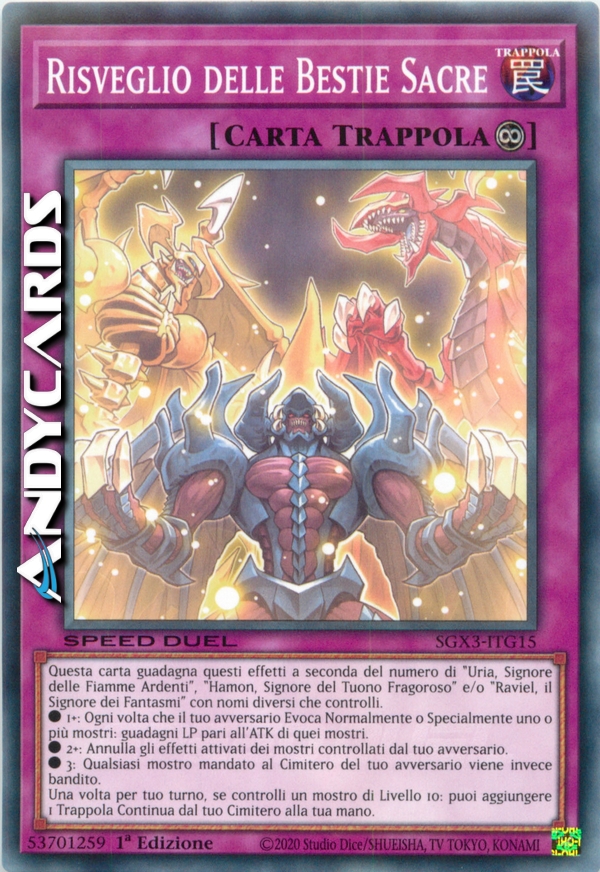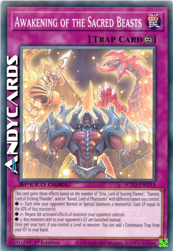 Questa carta guadagna questi effetti a seconda del numero di "Uria, Signore delle Fiamme Ardenti", "Hamon, Signore del Tuono Fragoroso" e/o "Raviel, il Signore dei Fantasmi" con nomi diversi che controlli.