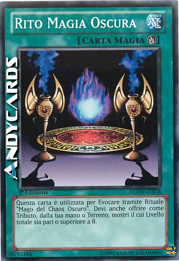 Questa carta è utilizzata per Evocare tramite Rituale "Mago del Chaos Oscuro". Devi anche offrire come Tributo, dalla tua mano o Terreno, mostri il cui Livello totale sia pari o superiore a 8.