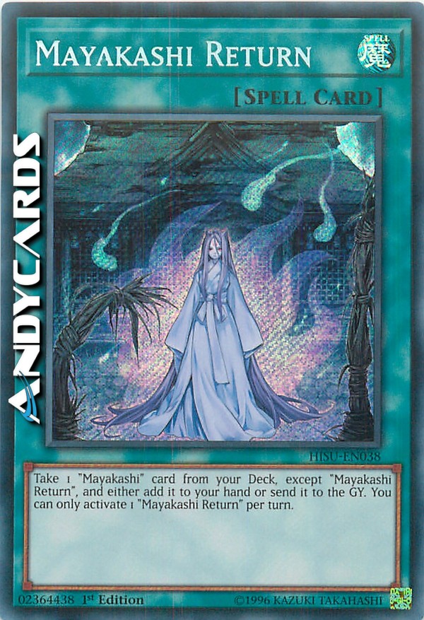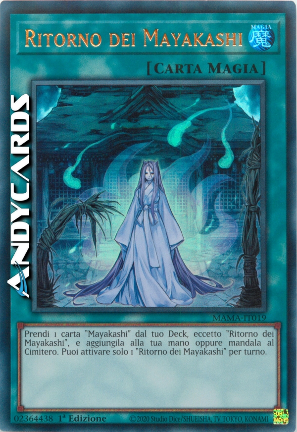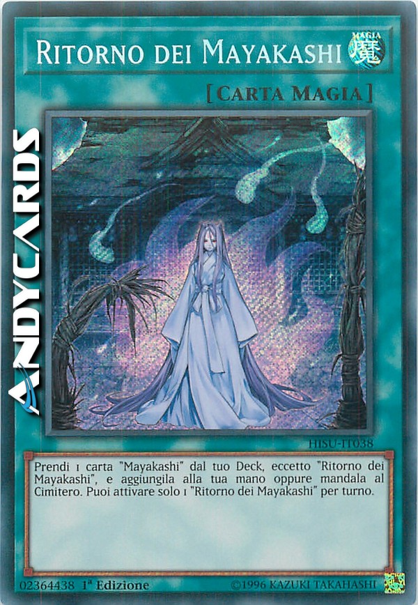 Prendi 1 carta "Mayakashi" dal tuo Deck, eccetto "Ritorno dei Mayakashi", e aggiungila alla tua mano oppure mandala al Cimitero. Puoi attivare solo 1 "Ritorno dei Mayakashi" per turno.