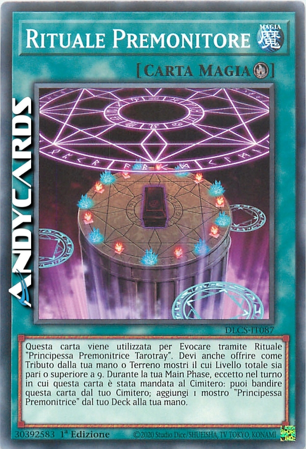 Questa carta viene utilizzata per Evocare tramite Rituale "Principessa Premonitrice Tarotray". Devi anche offrire come Tributo dalla tua mano o Terreno mostri il cui Livello totale sia pari o superiore a 9. Durante la tua Main Phase, eccetto nel turno in cui questa carta è stata mandata al Cimitero: puoi bandire questa carta dal tuo Cimitero; aggiungi 1 mostro "Principessa Premonitrice" dal tuo Deck alla tua mano.