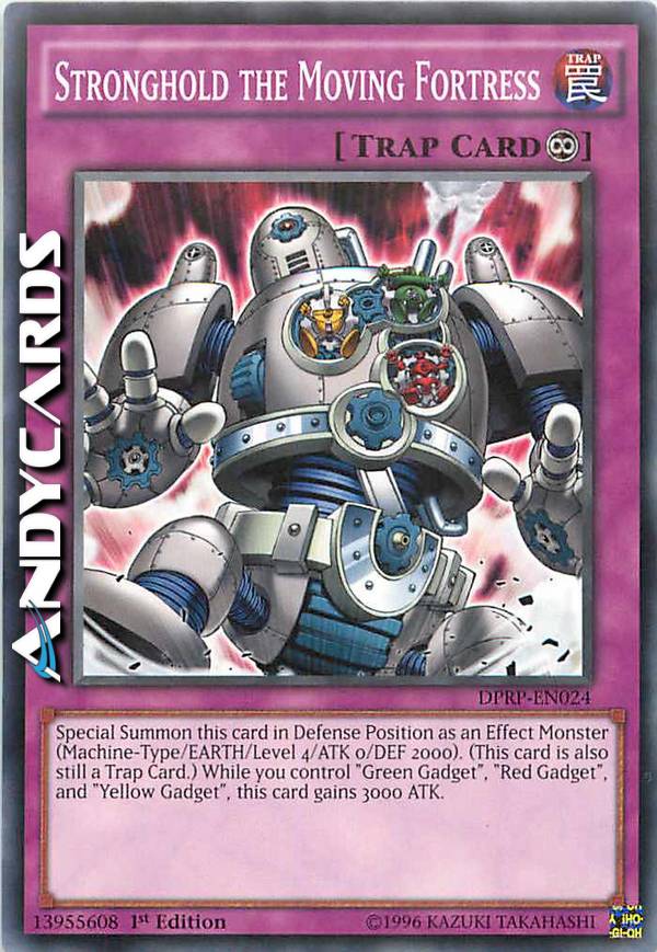 Special Summon this card in Defense Position as an Effect Monster (Machine-Type/EARTH/Level 4/ATK 0/DEF 2000). (This card is also still a Trap Card.) While you control a face-up "Green Gadget", "Red Gadget", and "Yellow Gadget", this card's ATK becomes 3000.