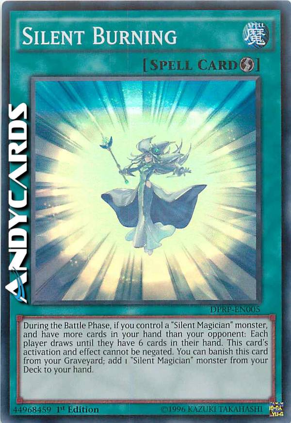 Durante la Battle Phase, se controlli un mostro "Mago Silente" e hai più carte nella tua mano del tuo avversario: ogni giocatore pesca fino a quando ha 6 carte nella sua mano. L'attivazione e l'effetto di questa carta non possono essere annullati. Puoi bandire questa carta dal tuo Cimitero; aggiungi 1 mostro "Mago Silente" dal tuo Deck alla tua mano.