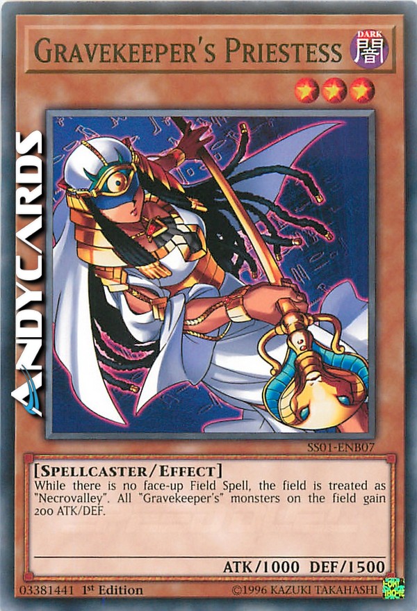 Il Terreno viene considerato come "Necrovalle". Se c'è una Carta Magia Terreno scoperta, questo effetto non si applica. Tutti i mostri "Custode di Tombe" scoperti sul Terreno guadagnano 200 ATK e DEF.