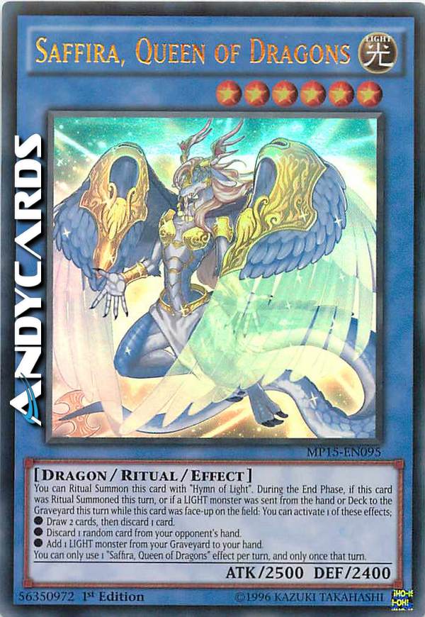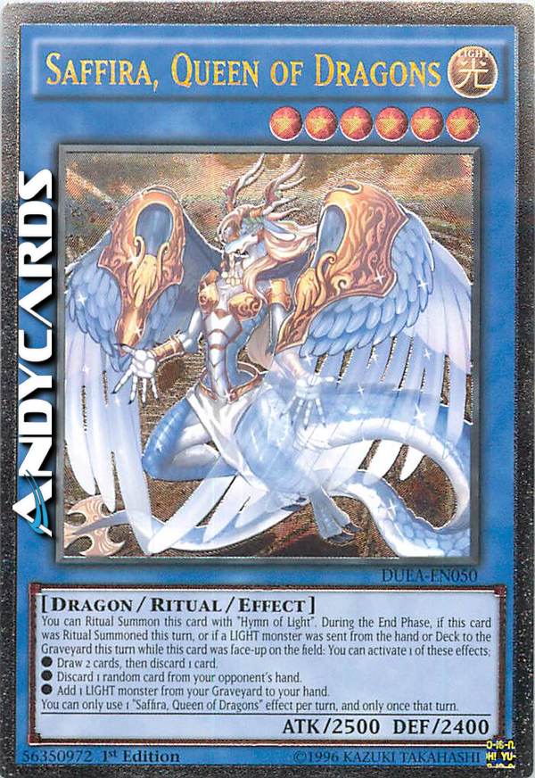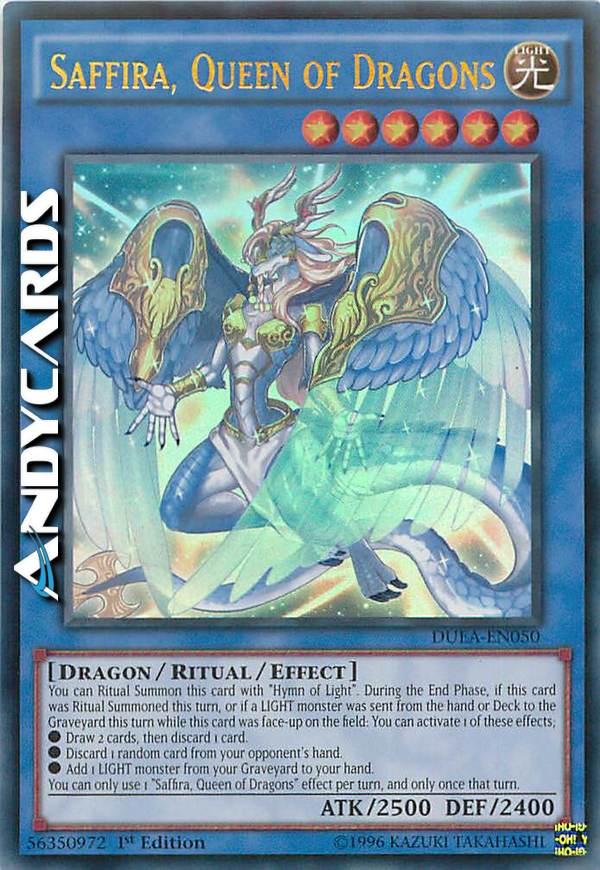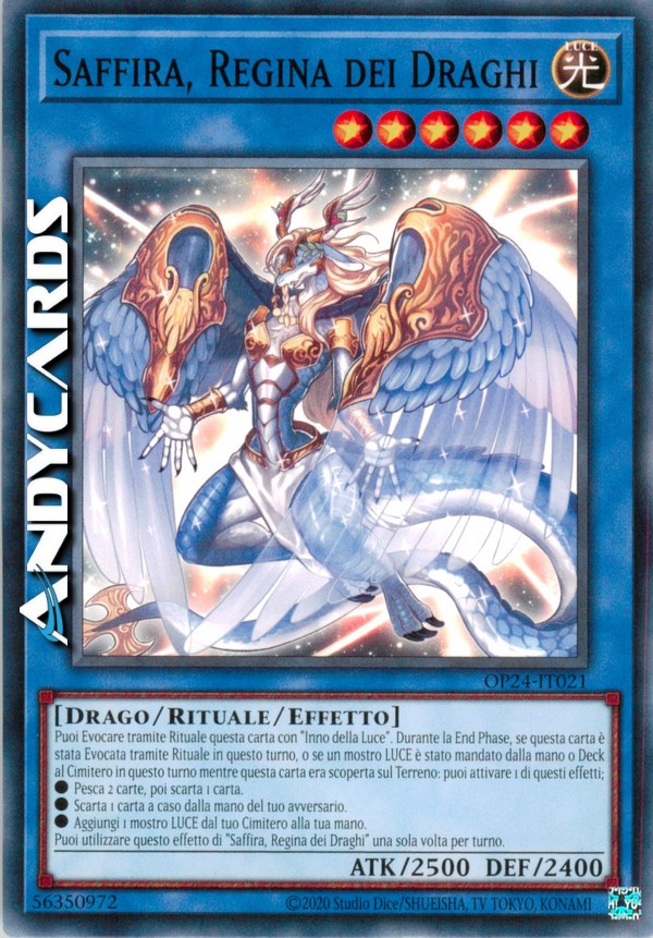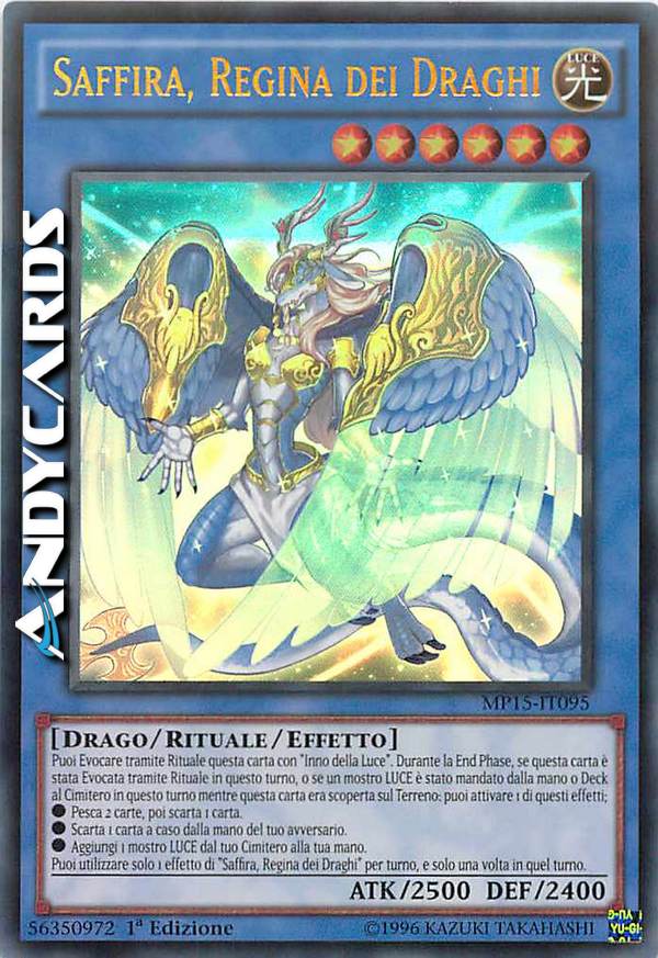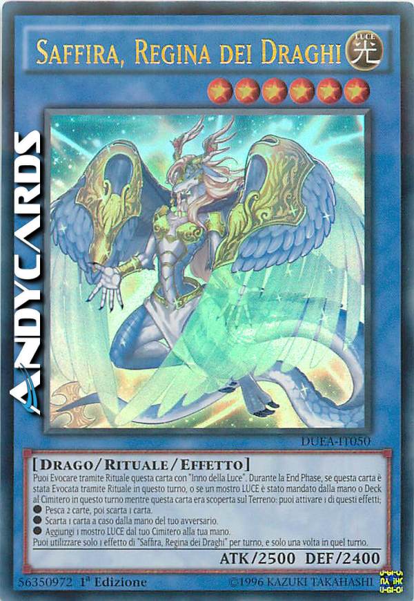Puoi utilizzare solo 1 Effetto di "Saffira, Regina Dei Draghi" per turno, e solo una volta in quel turno.