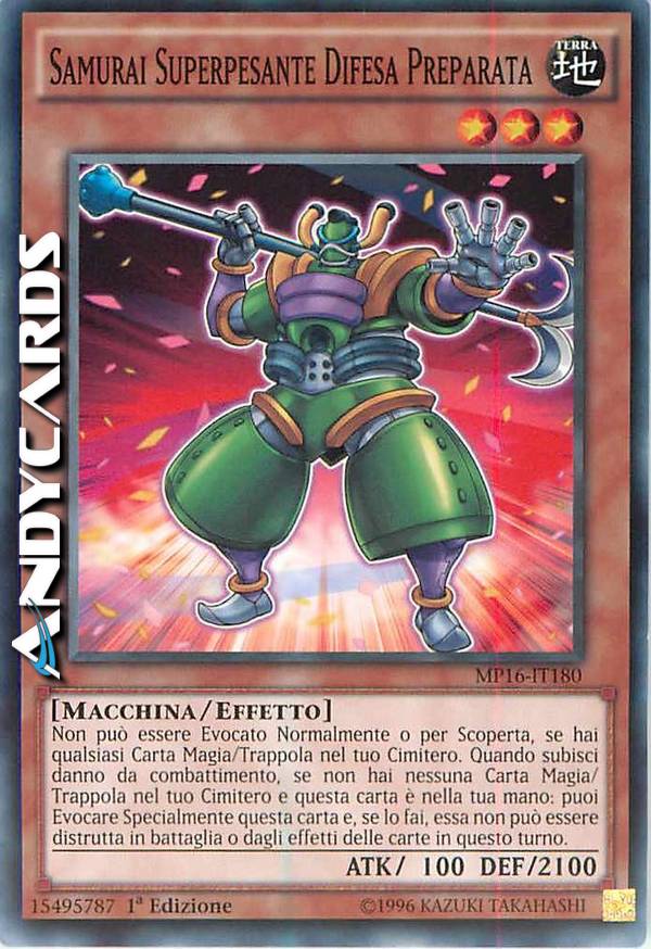 Non può essere Evocato Normalmente o per Scoperta, se hai qualsiasi Carta Magia/Trappola nel tuo Cimitero. Quando subisci danno da combattimento, se non hai nessuna Carta Magia/Trappola nel tuo Cimitero e questa carta è nella tua mano: puoi Evocare Specialmente questa carta e, se lo fai, essa non può essere distrutta in battaglia o dagli effetti delle carte in questo turno.