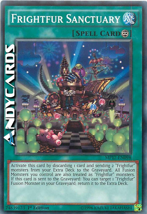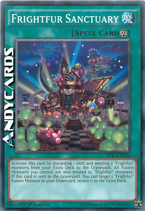 Activate this card by discarding 1 card and sending 2 "Frightfur" monsters from your Extra Deck to the Graveyard. All Fusion Monsters you control are also treated as "Frightfur" monsters. If this card is sent to the Graveyard: You can target 1 "Frightfur" Fusion Monster in your Graveyard; return it to the Extra Deck.