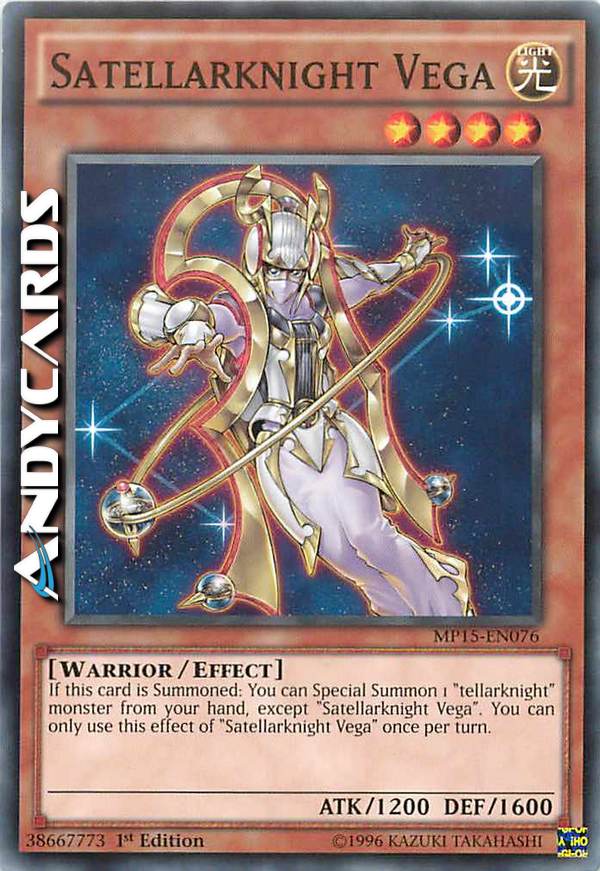 If this card is Summoned: You can Special Summon 1 "tellarknight" monster from your hand, except "Satellarknight Vega". You can only use this effect of "Satellarknight Vega" once per turn.