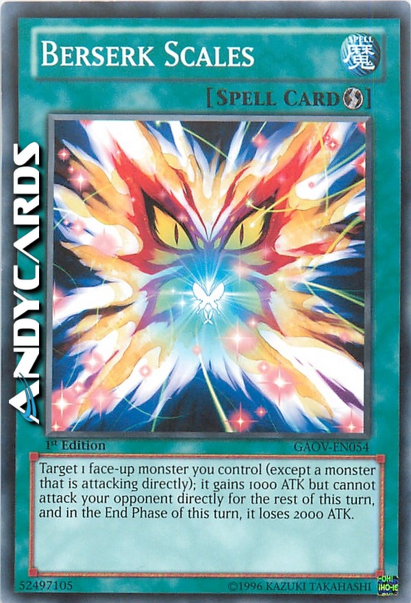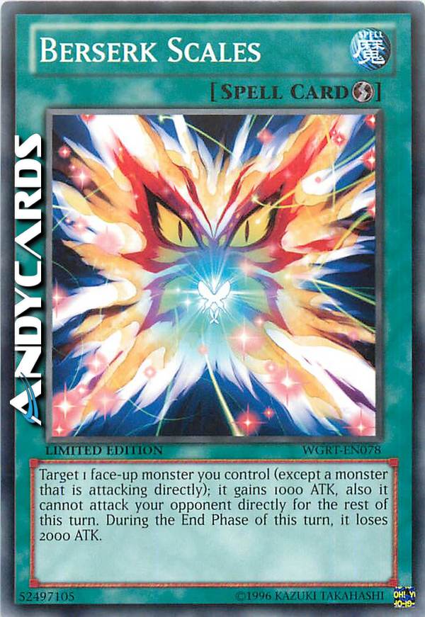 Scegli come bersaglio 1 mostro scoperto che controlli (eccetto un mostro che sta attaccando direttamente); esso guadagna 1000 ATK, ma non può attaccare il tuo avversario direttamente per il resto di questo turno e, nella End Phase di questo turno, esso perde 2000 ATK.