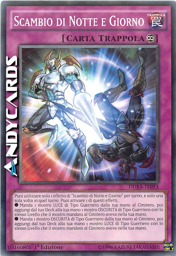 Puoi utilizzare solo 1 effetto di "Scambio di Notte e Giorno" per turno, e solo una sola volta in quel turno. Puoi attivare 1 di questi effetti;
