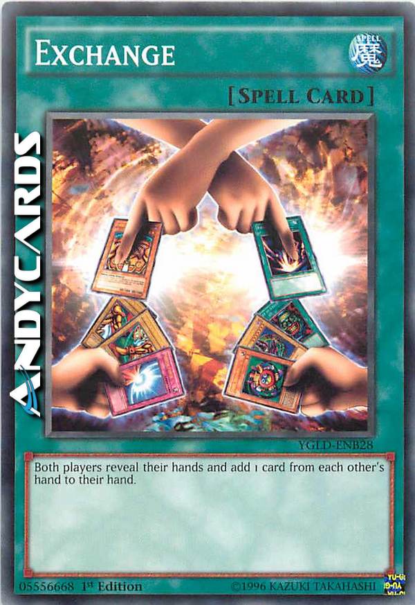 Entrambi i giocatori rivelano la loro mano e aggiungono 1 carta dalla mano del loro avversario alla loro mano.
