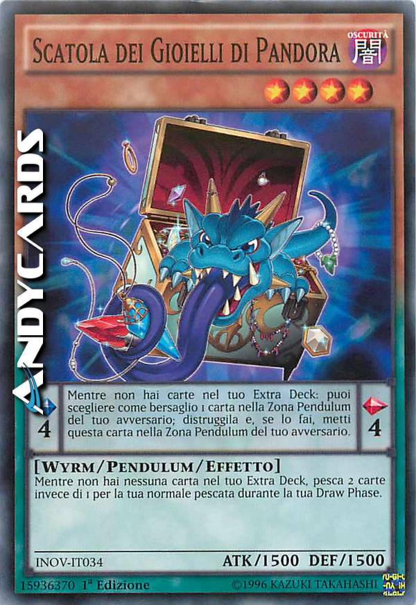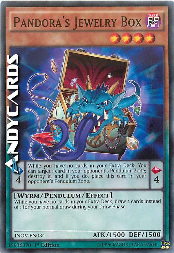 Mentre non hai carte nel tuo Extra Deck: puoi scegliere come bersaglio 1 carta nella Zona Pendulum del tuo avversario; distruggila e, se lo fai, metti questa carta nella Zona Pendulum del tuo avversario. Mentre non hai nessuna carta nel tuo Extra Deck, pesca 2 carte invece di 1 per la tua normale pescata durante la tua Draw Phase.
