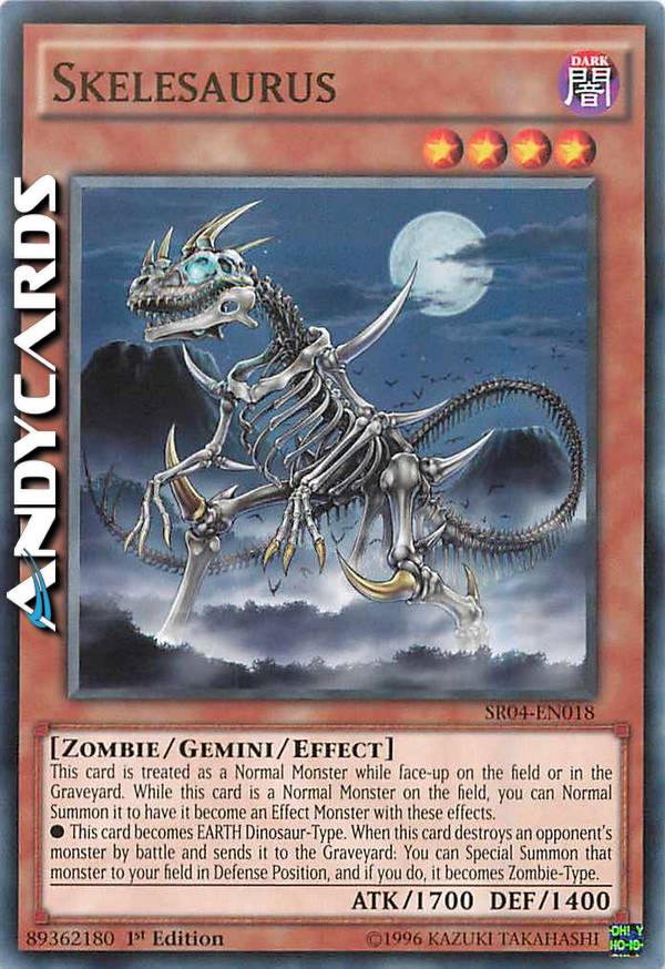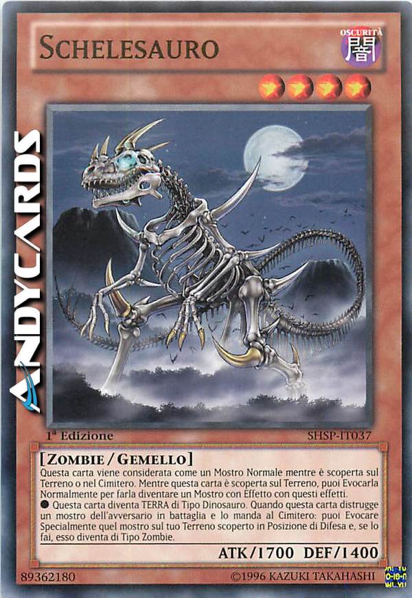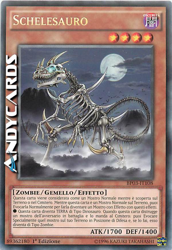 ? Questa carta diventa TERRA di Tipo Dinosauro. Quando questa carta distrugge un mostro dell'avversario in battaglia e lo manda al Cimitero: puoi Evocare Specialmente quel mostro sul tuo terreno scoperto in Posizione di Difesa e, se lo fai, esso diventa di Tipo Zombie.