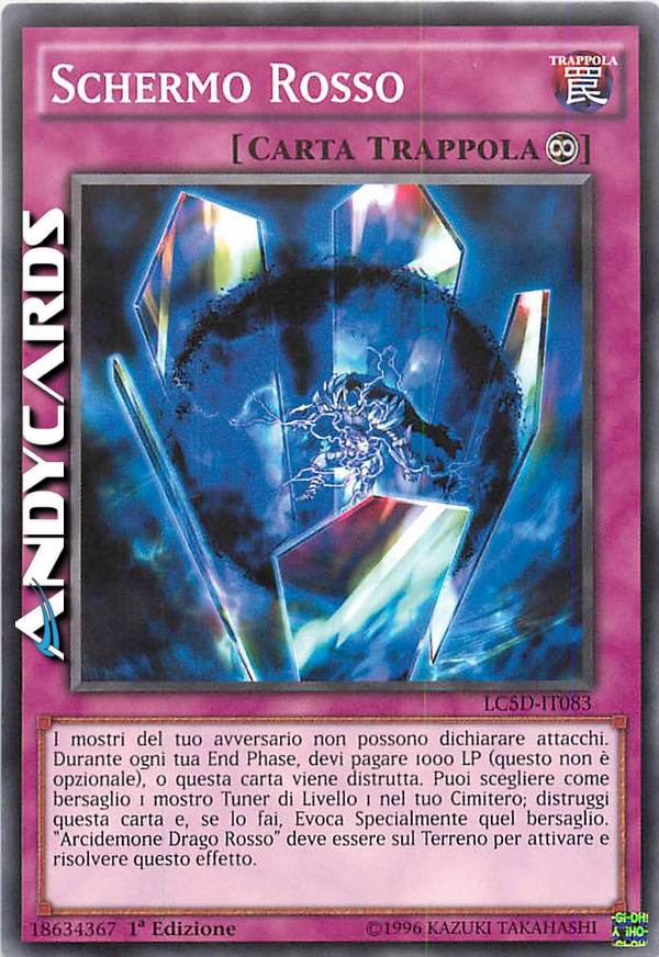 I mostri del tuo avversario non possono dichiarare attacchi. Il controllore di questa carta deve pagare 1000 Life Points durante ogni sua End Phase (questo non è opzionale), o questa carta viene distrutta. Se "Arcidemone Drago Rosso" è scoperto sul Terreno, puoi scegliere 1 mostro Tuner di Livello 1 nel tuo Cimitero, poi distruggere questa carta ed Evocare Specialmente quel mostro.
