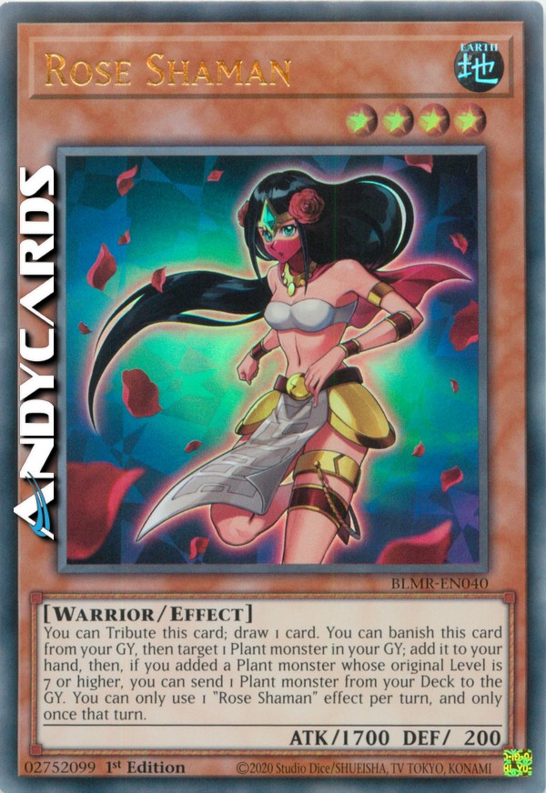 You can Tribute this card; draw 1 card. You can banish this card from your GY, then target 1 Plant monster in your GY; add it to your hand, then, if you added a Plant monster whose original Level is 7 or higher, you can send 1 Plant monster from your Deck to the GY. You can only use 1 "Rose Shaman" effect per turn, and only once that turn.