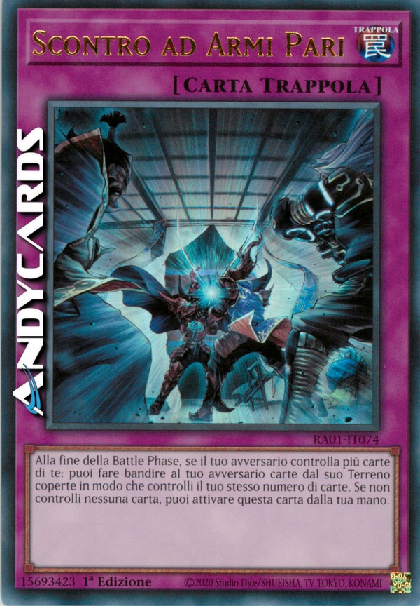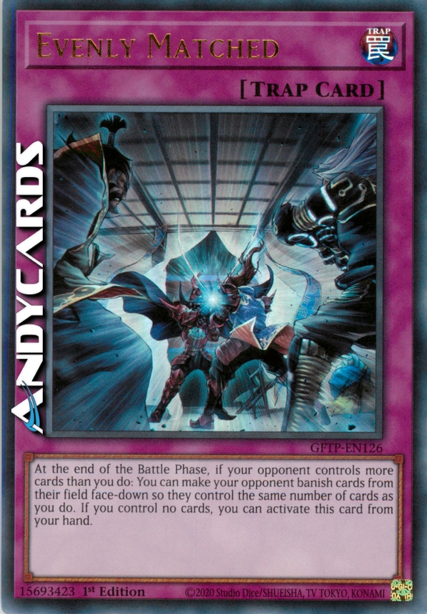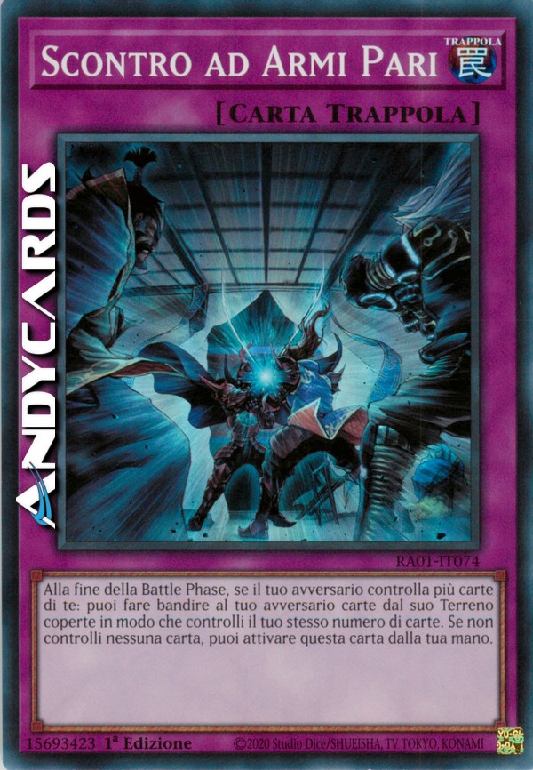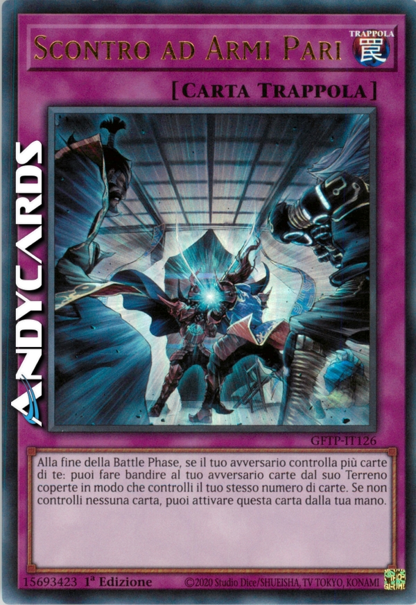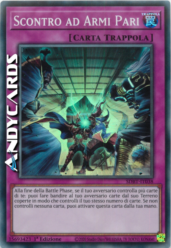Alla fine della Battle Phase, se il tuo avversario controlla più carte di te: puoi fare bandire al tuo avversario carte dal suo Terreno coperte in modo che controlli il tuo stesso numero di carte. Se non controlli nessuna carta, puoi attivare questa carta dalla tua mano.