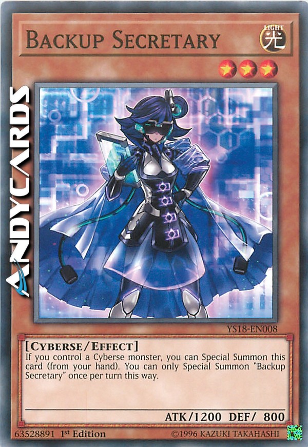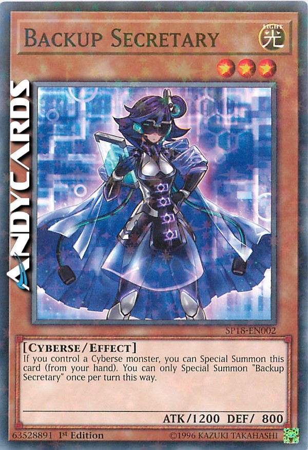 If you control a Cyberse monster, you can Special Summon this card (from your hand). You can only Special Summon "Backup Secretary" once per turn this way.